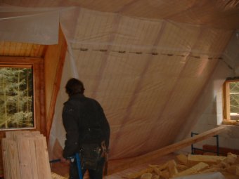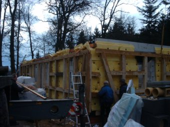 Links: Auch der Innenausbau - hier die Wärmedämmarbeiten - kann jetzt begonnen werden. |