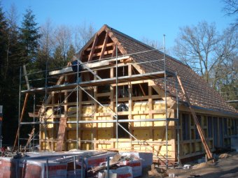 | Nachfolgend eine Fotoserie eines unserer aktuellen Bauvorhaben, bei dem wir neben den Zimmererarbeiten auch die Dachdecker- und Innenausbauarbeiten ausführen dürfen - alles aus eine Hand! | |