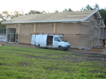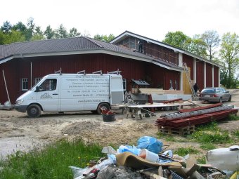 ![]() Zwischenzeitlich wird der Pferdestall auch innen ... |