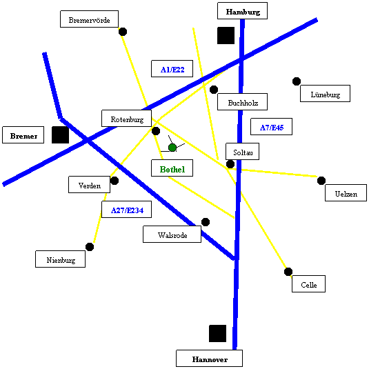 Unser Einzugsgebiet liegt im Großraum Bremen - Hamburg - Hannover in einem Umkreis von ca. 150 km um Bothel.